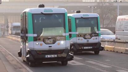 Entre tanto, les está creciendo también la competencia. En París, es la empresa EasyMile, la que ha probado de modo experimental —hasta el pasado 7 de abril— unos autobuses sin conductor en el puente Charles de Gaulle, para cruzar de la estación de tren de Austerlitz a la de Lyon. Dos vehículos eléctricos EZ10 recorren los cerca de 200 metros del puente en un carril reservado, cada uno con capacidad para unas seis personas sentadas y dos de pie.