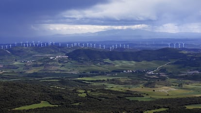 Otazu, de 50 años, nació en un pueblito que señala desde aquí arriba, Pitillas, de 500 habitantes. Estudió Ingeniería Eléctrica en la Universidad de Navarra. En la carrera oyó hablar por primera vez de los molinos. “Parecía una cosa de locos”. Dinamarca era el país pionero; España, un erial en pañales. Al terminar los estudios, lo contrataron en una empresa vasca llamada Ingeteam. Eran seis empleados. Llevaba los procesos de automatización en centrales minihidráulicas de EHN (Energía Hidráulica de Navarra), una compañía de capital público-privado creada para fomentar el uso de las renovables. Fueron los impulsores de las estaciones meteorológicas; la empresa de Otazu se encargó de su mantenimiento. Y cuando encontraron aquel chorro de viento en el Perdón y se trazó un plan mano a mano con la Administración, al ingeniero le tocó diseñar la conexión de los aerogeneradores a la red eléctrica. Dice que la primera vez que vio un molino fue uno de estos: “Y recuerdo pensar que era el futuro”.
