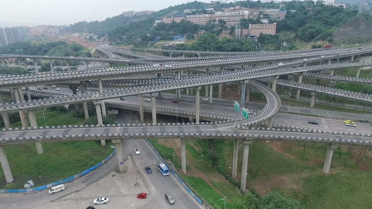 Tras ocho años de obras, China ha inaugurado un laberinto de hormigón de cinco niveles, con 15 rampas y a 37 metros de altura. En este descomunal scalextric, situado en Chongqing, un municipio del suroeste de China, los automóviles pueden decidir entre ocho direcciones diferentes. Un funcionario del Comité de Construcción Urbana y Rural de la ciudad ha explicado que el complejo diseño era necesario para conectar el núcleo urbano, el aeropuerto y la autopista de la ciudad aunque, más allá de la conveniencia de contar con la infraestructura, la construcción se ha convertido en un éxito para los miles de conductores que pasan por allí a diario y que no se resisten a tomar imágenes y compartirlas en las redes sociales. Sus dimensiones y parecido con el popular juego que imita un circuito de carreras lo han convertido en un fenómeno viral en China, donde la mayoría de usuarios apuestan por el humor, con frases como "si te equivocas de rampa, llegarás un día después" o "Chongqing, la ciudad de la que nunca te vas". Aunque no faltan quienes muestran su orgullo por haber sido capaces de atravesarlo sin perderse.