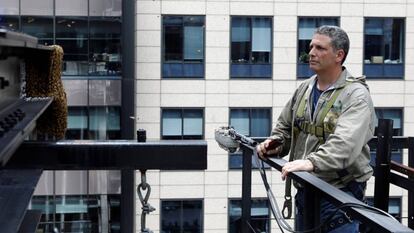Un apicultor observa la colmena de abejas instalada en un edificio de Times Square.Vídeo: REUTERS-EVP