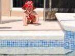 Uno de los grandes avances de las empresas textiles es la creación de bañadores y ropa que protegen de los rayos UVA. Un avance que nos da mucha seguridad a los padres, debido a que la exposición al sol es peligrosa para todos, pero sobre todo para los más pequeños. Mi hija, por ejemplo, es muy blanca y necesita kilos y kilos de crema y, por lo menos, las partes que cubre el bañador están protegidas. Un niño de dos años no para moverse, de jugar, de querer estar el agua, y que su piel esté cuidada es fundamental. Aunque no evita dar crema en las partes desprotegidas de forma continua y cada vez que el pequeño salga del agua y esté bien seco, o cuando esté más de dos horas al sol. Si tiene el pelo mojado o está jugando en la arena, siempre es aconsejable que lleve un gorro.