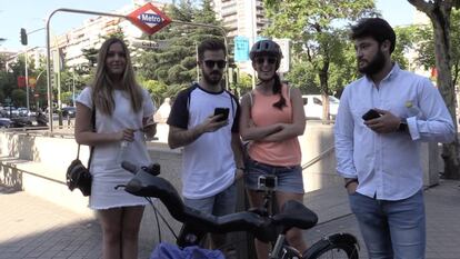 Cuatro personas realizan el mismo viaje por el centro de Madrid para descubrir con qué transporte se llega antes