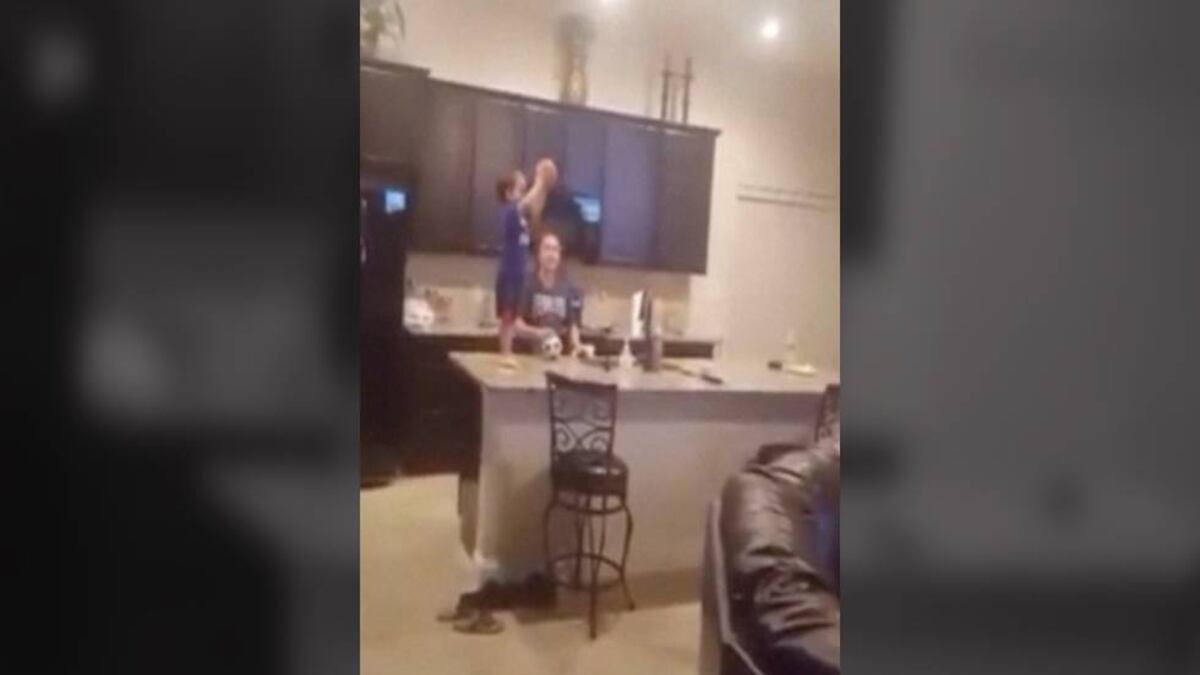 El niño de dos años que logra canastas increíbles en el salón de su casa