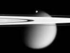 Los anillos de Saturno –la joya del Sistema Solar- forman una estructura de casi 300.000 kilómetros de diámetro máximo pero sólo diez metros de espesor. En muchos puntos son transparentes. Los forman millones y millones de fragmentos sueltos que orbitan de forma independiente. La influencia gravitatoria de los satélites de Saturno hace que se agrupen formando miles de anillos concéntricos, como los surcos de un antiguo vinilo. Entre ellos se mueven otros pequeños satélites, de unos pocos kilómetros de diámetro, que unas veces deforman la estructura de los anillos y otra se encargan de mantenerlos agrupados. Un ballet increíble que sólo ha sido posible conocer en detalle mediante las películas transmitidas, foto a foto, la Cassini..