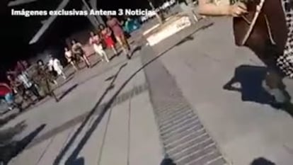In the video, which was shot by a passerby, Younes Abouyaaqoub is seen at the 45-second mark, and is even heard talking. He is asked in Spanish by the woman taking the video: “What’s happening?” He replies, saying: “I don’t know, it’s all happening over there.”