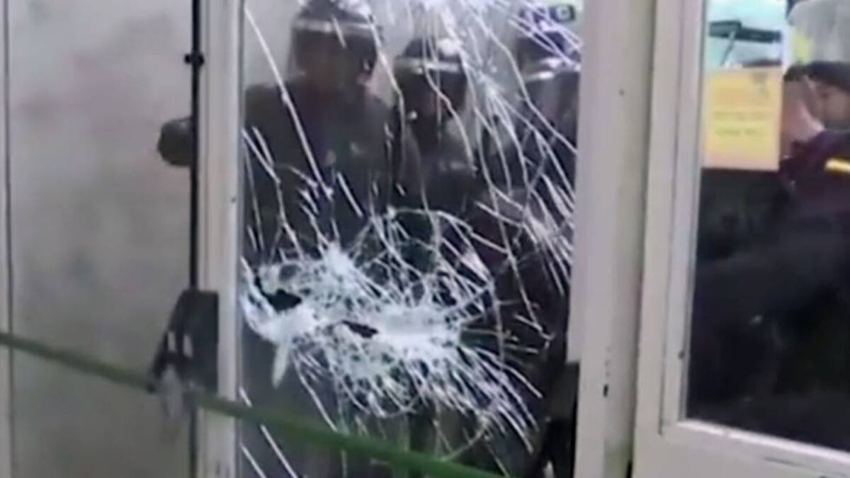 Los agentes del Insituto Armado han tenido que romper los cristales de la puerta para poder acceder al edificio