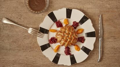 Oria ha diseñado un menú de fiesta sencillo y sorprendente para los lectores de El País Semanal. Platos clásicos con toques gourmet, como un solomillo Wellington individual en vez del típico pavo al horno. O una refrescante tarta de limón en lugar del clásico turrón. “Lo más importante en Navidad es tenerlo todo lo más atado posible. No escojas un plato que requiera estar mucho tiempo en cocina. Si nunca has cocinado una pularda rellena, no es el día para probar a hacerla. Hay que ir sobre seguro, hacer lo que sabes que te sale rico para poder relajarte y disfrutar en familia”.