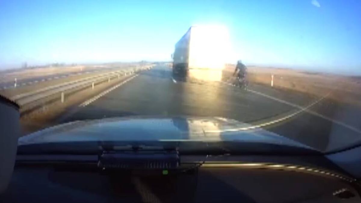 A pesar de que circular en bicicleta está prohibido en las autopistas de Lituania, un hombre fue detenido el pasado 3 de diciembre cuando pedaleaba a una velocidad de unos 90 kilómetros por hora, según muestra el velocímetro del coche policial que le seguía de cerca. El ciclista, además, no mantenía la mínima distancia de seguridad con el camión que circulaba delante, cuya presencia aprovechó para evitar la resistencia del viento y aumentar así su velocidad La policía le persiguió en uno de sus vehículos y le obligó a detenerse. Circular en bicicleta en este tipo de carreteras se sanciona en Lituania con una multa entre 20 y 40 euros.
