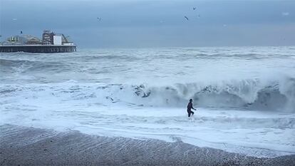 La dueña del animal se metió en el agua pese al fuerte oleaje que azotaba la costa de Brighton