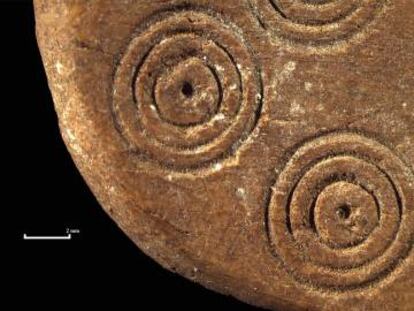 Alarcón muestra fotografías de uno de los hallazgos más impactantes de Biniadrís: mechones perfectamente conservados de pelo coloreado por el ocre. “A las personas que morían les cortaban un mechón y lo metían en un tubito, de cuero, de madera o de otro material”, describe. En las tapas de estos recipientes, elaboradas con hueso, grababan series de círculos concéntricos casi perfectos. Es imposible saber qué significaban estas ceremonias para ellos. En la misma época, los asirios alababan a Enki, el dios del agua dulce; y los egipcios adoraban a Osiris. Como otros miles de creencias que fueron la verdad revelada y motivo de guerras para generaciones enteras de seres humanos, hoy ya no significan nada.