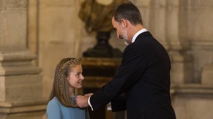 A Leonor de Borbón Ortiz, 12 octubres y tres meses, heredera al trono por la gracia de la genética, debe de andar rondándole ese hito en el que todo será igual pero nada será lo mismo