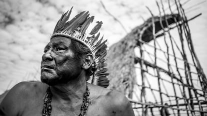 Bajo el templo indígena de Tey’i Jusu solo se escucha el crujir del techo de hojas de palma que, secas por el devastador sol, se resquebrajan con cada ventarrón. La falta de vegetación en kilómetros a la redonda abre camino al viento, que acelera por los descampados que hasta hace poco más de un año solo sabían de cosechadoras y agrotóxicos. Aquellos extensos bosques que cubrían el suroeste de Brasil son ahora pequeños oasis en interminables monocultivos que se pierden en el horizonte, principalmente de soja y maíz, lo que constituye un desafío para la supervivencia de los guaraní kaiowá.