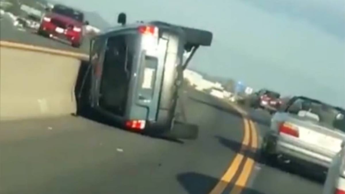 Un conductor ha sido arrestado después de que su coche volcase en un atropello a otro automóvil en la Ruta 78 a la altura de Oceanside, California. El incidente fue grabado el día 15 de febrero por Dallas Montanez, una ciudadana estadounidense que ha publicado la secuencia en sus redes sociales. El vídeo muestra cómo Kevin McCall, a bordo de un BMW plateado, y Andrew Branch, desde un Ford de color gris, se encaran en plena autovía hasta el punto de detener la circulación. Cuando McCall regresa a su a coche, Branch le embiste con su todoterreno con tan mala fortuna que acaba volcando en el arcén de la carretera. El tráfico estuvo detenido durante una hora y nadie resultó herido, pero Branch se enfrenta ahora a varios cargos, entre ellos el de asalto con un arma.