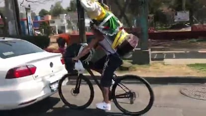 La irresponsabilidad de un ciclista en Ciudad de México le ha costado no solo un accidente, sino ser objeto de numerosos memes en redes sociales. Mientras el hombre conducía una bicicleta con un la figura de San Judas Tadeo a la espalda, otros ciudadanos comenzaron a grabarle desde un coche. El ciclista se volvió hacia ellos para mirar a cámara, y acabó estampándose con un vehículo que estaba en la calzada. El vídeo, publicado en Facebook el jueves pasado, se ha convertido en todo un fenómeno viral con más de 10 millones de reproducciones y más de 270.000 compartidos. Según medios locales, se desconoce el estado del ciclista, que ha sido protagonista de numerosas bromas junto al santo en Twitter.