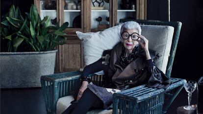 Porque más allá de su estética libre de complejos, Apfel ha sido ejemplar en dinamitar los estereotipos de la vejez. Está feliz con sus arrugas —“no veo nada malo en ellas; son una insignia de valor”— y a sus 96 años sigue definiéndose como una persona inquieta por naturaleza. Tras la muerte de su marido, con el que trabajaba mano a mano y estaba muy unida, decidió centrarse en su trabajo como diseñadora, modelo o ponente: “Decidí que para mantener la cordura lo mejor era trabajar más duro que nunca, porque sé que si me quedara en casa sería muy infeliz”.