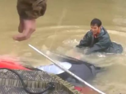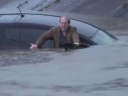 Una mujer graba el momento en el que queda atrapada dentro de su coche por las inundaciones
