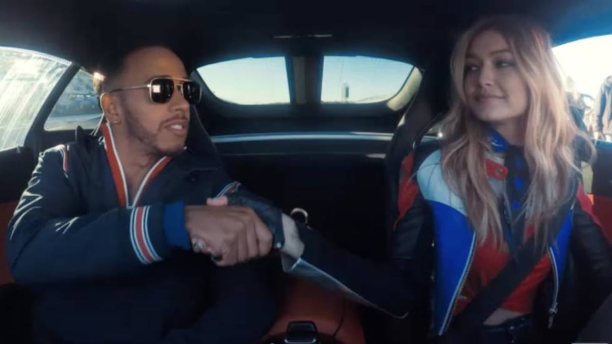 Lo siguiente que muestra el vídeo, dirigido por Matt Baron para Tommy Hilfiger (firma a la que ambas estrellas prestan su imagen esta temporada), es a una Gigi desencajada por la velocidad del coche que solo acierta a decir "Lew, Lew, Lew" (diminutivo de Lewis) mientras agarra el brazo del piloto de Fórmula 1 entre gritos. Él ríe concentrado en cada curva que toma y finalmente se detiene.