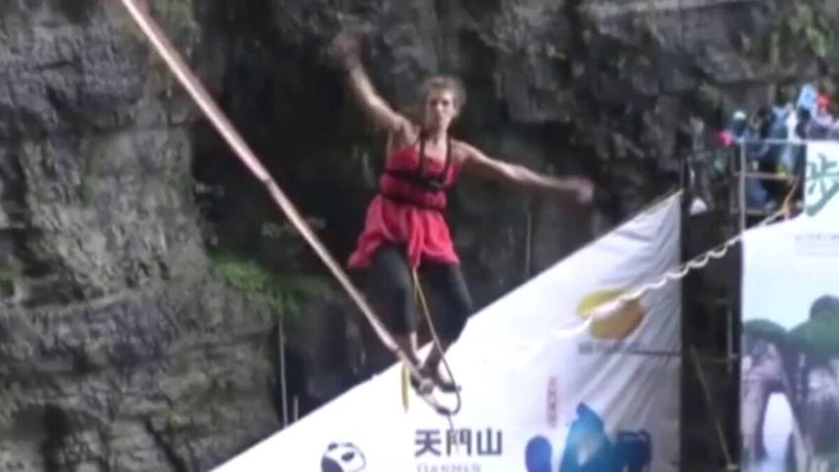 Sobre un cable de 25 milímetros y 70 metros de largo, tres equilibristas de Francia, Canadá y EEUU. se han alzado este fin de semana con la victoria del campeonato mundial de esta peculiar competición. Subidas sobre tacones de cinco centímetros, las mujeres avanzaron por la cuerda a 1.300 metros de altura en el Parque Nacional de Tianmen en la provincia de Hunan en China.