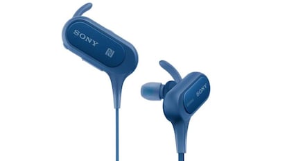 - Sony MDR-XB50BSL. Una alternativa para los que son incapaces de hacer ejercicio sin escuchar música pasa por estos altavoces in-ear con soporte en arco. Su sistema acústico es cerrado y te permitirá tener hasta 8,5 horas de autonomía. Su diseño IPX4 es resistente a las salpicaduras y posee conectividad Bluetooth inalámbrica y micrófono. 45% de descuento, ahorra 39 euros
