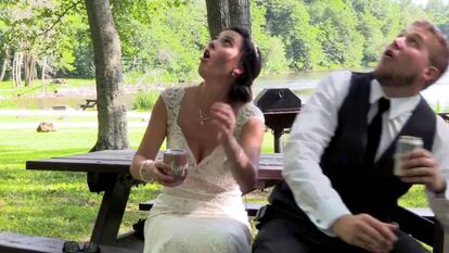 Cheyenne y Lucas Kopeschka, una pareja recién casada, escaparon de ser aplastados por un árbol el día de su boda. El enlace matrimonial se produjo el pasado día 7 de julio en Fredonia, Wisconsin (Estados Unidos), y tras darse el sí quiero, ambos fueron entrevistados por Freddy Hernández, su fotógrafo. El diálogo entre ellos tenía lugar en una mesa, a la sombra de los árboles, hasta que el crujido de una rama alertó al matrimonio, quien se levantó rápidamente para evitar ser golpeado por el árbol. Hernández decidió publicar la secuencia completa en su perfil de Facebook y el vídeo ya cuenta con más de 100.000 reproducciones.