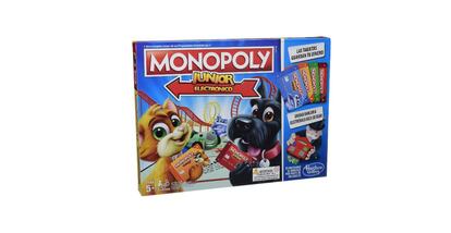 - Monopoly Junior Electronic Banking. Un clásico modificado y adaptado para que los niños se diviertan y jueguen con peones distintos y adquieran propiedades diferentes a las que conocemos los mayores. Sus cuatro jugadores son ahora un perro, un gato, un coche y un barco, y se compran una heladería, una juguetería o una pista de monopatín. Ya no hay dinero, sino una unidad bancaria electrónica y tarjetas con las que se compra, alquila o recibes dinero al pasar por la casilla de salida. 43% de descuento, ahorra 12,96 euros.