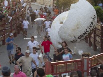 A 29-year-old man was left seriously injured on Sunday after he was knocked into a fence during the so-called “boloencierro,” a bull run that, instead of an animal, features a 250-kilo Styrofoam ball. The victim suffered serious head injuries and was taken to hospital from the fiestas in the Madrid town of Mataelpino.