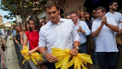 The president of the national wing of the party, Albert Rivera, and the leader of the Catalan branch, Inés Arrimadas, removed yellow ribbons from a railing on a street in the town of Alella in Barcelona province.