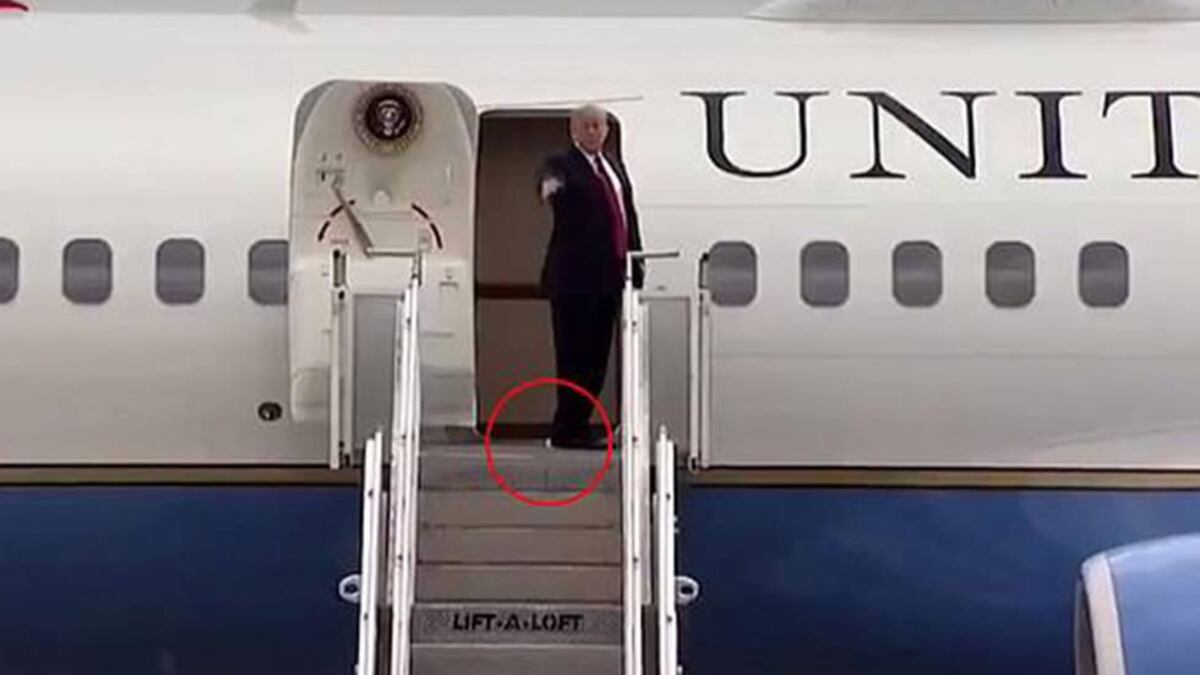 Donald Trump se embarca en el Air Force One con papel higiénico pegado al zapato