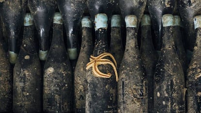El centro de operaciones de Crusoe Treasure es una concesión submarina de 500 metros cuadrados a media milla de la costa de Plentzia, un pueblo de origen medieval del noroeste del País Vasco. Está poblado por módulos de hormigón con rejas, para que las corrientes puedan circular con libertad ahí adentro. Tiene capacidad para 10 jaulones donde las botellas se apiñan como los libros en las estanterías de una biblioteca. Y está equipada con unos sensores que miden variables como la presión, que suele rondar las tres atmósferas, y la temperatura, que casi nunca supera los 19 grados. La mayoría de las botellas permanece a 18 metros de la superficie entre seis meses y un año. Las huevas de pez, las esponjas y las estrellas marinas se adhieren a ellas como un chicle a la suela de los zapatos nuevos; alrededor de 150 especies ya catalogadas hacen lo propio en el resto de la estructura y entre todas conforman un arrecife artificial que ayuda a regenerar la zona y a recopilar datos que en el futuro pueden arrojar luz sobre procesos como el cambio climático.
