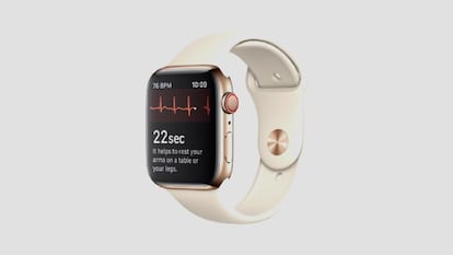 Al borde de esta corona se encuentra uno de los electrodos de un sensor eléctrico en dos partes. El otro está situado en la parte trasera del Apple Watch Series 4 —la que está en contacto con la muñeca— y, su combinación, permite realizar electrocardiogramas. Esta función, una de las más comentadas tras la presentación del dispositivo, ayudaría a detectar enfermedades del corazón o alteraciones metabólicas a raíz de la actividad eléctrica del corazón. Y hablamos en condicional porque todavía no está disponible: llegará primero a Estados Unidos y lo más probable es que todavía tarde en llegar (si lo hace) a Europa. Lo que sí podemos hacer desde ya es configurar avisos si el reloj detecta que nuestra frecuencia cardiaca es mayor o menor de un valor determinado.