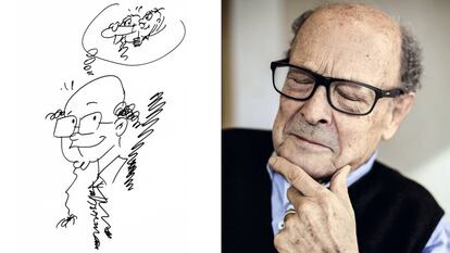 ENTREVISTAR a Francisco Ibáñez reviste tintes épicos en lo que a petición de cita se refiere. No porque se crea una estrella —que lo es—, sino porque anda “jodidillo” (las comillas son suyas) y ya no quiere jaleos. La espalda no perdona. Son más de 60 años inclinado sobre la mesa de dibujo. Así que la petición para esta charla fue cursada en junio y se resolvió en diciembre. Un poco como si Ibáñez fuera el presidente del Gobierno (¿se lo imaginan?). Mortadelo y Filemón cumplieron seis décadas en 2018 y siguen activos. Nadie en España vendió nunca tantos libros durante tanto tiempo (más de 100 millones de ejemplares, estima el editor de Ibáñez, Manuel de Cos). Nadie en España inició a tantos en la lectura. Los niños siguen pidiéndoles los tebeos de Mortadelo y Filemón a sus padres, aunque no es descartable que los papás utilicen como coartada a los niños para hacerse con ellos. O con los de Rompetechos, o con los de 13, Rue del Percebe. Ibáñez llega a la entrevista asustado ante la sesión de fotos. “Es que algunos fotógrafos te obligan a hacer unas cosas…Una vez uno me decía: ‘Túmbese en ese sofá, ahora en ese otro, ahora…’, y tuve que cortarle y decirle: ‘¡Oye, que no soy la Sarita Montiel!”.