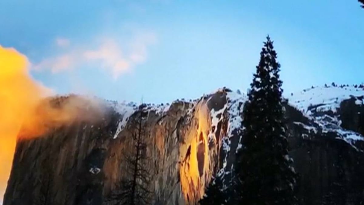 Algunos años, durante una semana del mes de febrero conocida como ‘Firefall Week’, se produce un fenómeno denominado ‘cola de caballo’ en el Parque Nacional Yosemite de California (Estados Unidos), que atrae a muchos turistas por su impresionante aspecto de cascada de lava. Según explica la página web del parque, se trata de un evento natural que se produce cuando la luz incide sobre el agua en un ángulo concreto que solo se da en esta época del año, gracias a que la nieve y la lluvia abundan en el parque. La luz del sol derrite la nieve y la convierte en agua, que fluye montaña abajo.