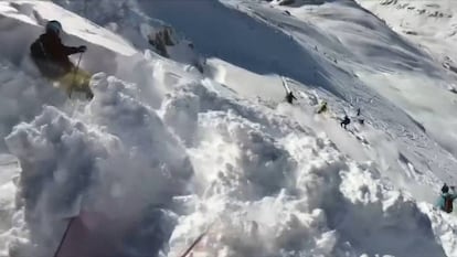 Un esquiador que se disponía a descender por una popular ruta de esquí fuera de pista en Arlberg, en los Alpes austríacos, ha difundido el vídeo en el que se observa cómo una avalancha de nieve sorprendió a varios esquiadores sobre una cordillera. El incidente, difundido por la agencia Reuters este miércoles, provocó que los deportistas cayeran por la ladera de la montaña, cercana al complejo hotelero de St Anton Arlberg, hasta donde acudió un equipo de rescate rápidamente. "No nos dimos cuenta de la presión que estábamos ejerciendo sobre la nieve. El resto se explica viendo el vídeo", ha comentado uno de los esquiadores, que ha reconocido que quedó en estado de 'shock' tras lo ocurrido. Ninguno de los deportistas quedó sepultado por la avalancha.