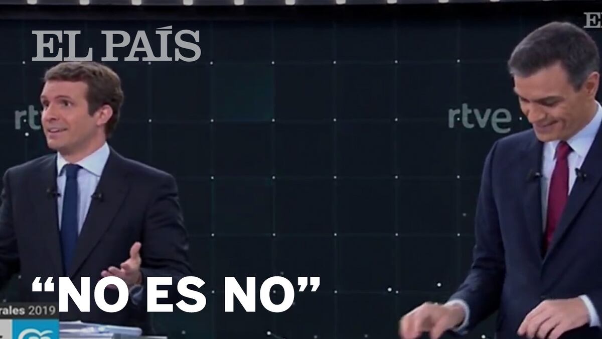 El debate electoral celebrado este lunes en TVE entre Pedro Sánchez (PSOE), Pablo Casado (PP), Pablo Iglesias (Unidas Podemos) y Albert Rivera (Cs) ha tenido varios momentos de tensión. Del adversario de Casado al silencio de Rivera. De la lectura de la Constitución de Iglesias al "no es no" de Sánchez. Estos han sido los mejores momentos del primer debate electoral del 28-A.