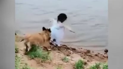 Una vez más, el perro se convierte en el mejor amigo del hombre. Esta vez, el animal ha evitado que una niña caiga a un río. El vídeo de 16 segundos, que fue compartido en Twitter el pasado 16 de junio, muestra a la menor caminando hacia la orilla del río para coger una pelota, antes de que pudiera caer al agua, el perro corrió hacia ella para evitarlo. Le agarró del vestido con el hocico y le puso en un lugar seguro. Acto seguido, él mismo fue quien recuperó la pelota. El gesto del perro ha llamado la atención de los usuarios en las redes sociales, quienes han alabado su "valiente "hazaña.