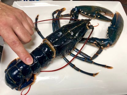 Bogavante chiguato Nunca había probado en esta casa la langosta chiguata, y mi amigo Carlos Mateos llevaba tiempo poniéndome los dientes largos con sus fotografías en Instagram. Al llegar, penetré como una flecha en sus cocinas donde el joven Pablo me mostró el bogavante chiguato de cáscara azul que tenía preparado. “Es más sabroso que la langosta. Te gustará, lo vamos a freír entero y lo cortaremos en la mesa. Al sumergirlo en aceite humeante su cascara se enrojece y se infla, incluidas sus pinzas”, me comentó. Para demostrarme la flexibilidad de la piel, presionó el crustáceo con el dedo índice a la altura de la cola.