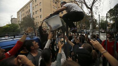 5,3 millones de ciudadanos llamados a votar. Urnas escondidas en bolsas de basura distribuidas en 2.135 centros de votación. Al menos 163 de ellos, ocupados desde dos días antes. Decenas de agentes de los Mossos d’Esquadra investigados en los meses siguientes por su presunta inacción. 6.000 agentes de la Policía Nacional y la Guardia Civil desplegados en un operativo especial que duró semanas. Y las imágenes de su intervención, recurriendo a la fuerza para desalojar decenas de centros, dando la vuelta al mundo.