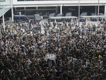 At around 6pm, the police were instructed to clear the area to prevent demonstrators from “violently accessing” the inside of the airport, according to Mossos d’Esquadra sources. Foam bullets were used against the crowd, and emergency services reported treating 56 people, 10 of whom were taken to the hospital. Some protesters hurled objects at the police while others sat down on the pavement. Vueling, Iberia and Air Europa were among the airlines that cancelled flights.