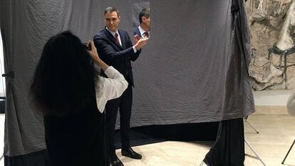 Pedro Sánchez entró en el Salón Barceló (antiguo Salón de Tapices) de La Moncloa, saludó, agarró el espejo, se miró en él, posó algo envarado al principio y más suelto después, dio las gracias y se perdió por los salones de palacio. Tenía que seguir el proceso de exhumación de Franco y por la tarde tenía un acto en Guadalajara (la víspera había recorrido Segovia, Salamanca y Zamora).