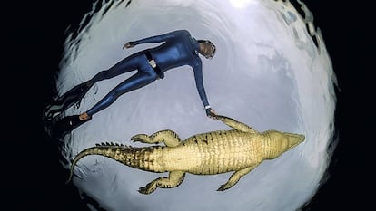 Futaki nació en 1980 en Kanazawa, un pueblo costero donde se elaboran quimonos. Su relación con el agua empezó a los tres años cuando su madre la inscribió en clases de natación. Toda su vida había practicado deportes acuáticos, así que, en ese instante cuando todo era oscuridad, optó por coger sus ahorros e irse a bucear a Honduras. Allí revivió. Haciendo fotografías y vídeos bajo el agua se sintió bien. Más tarde se mudó a México y siguió enganchada al buceo, todavía con tanque de oxígeno. En un viaje a Tailandia practicó el buceo libre, la apnea, y sintió que esa experiencia, sumergirse a pulmón y convivir con la mayor delicadeza posible con la fauna, le hacía sentirse pletórica. Sus fotos con animales como ballenas o cocodrilos son pura armonía, una danza perfecta en la que parece una sirena. “Ese es mi lugar”, dice. “Nunca estoy cómoda en tierra”.
