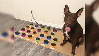 “Agua”, “parque” o “jugar” son algunos de los comandos que utiliza Stella, una perra de 18 meses, para comunicarse con sus dueños. Lo hace a través de un sistema de botones diseñado por Christina Hunger, terapeuta del habla y el lenguaje, que utiliza métodos parecidos para enseñar a hablar a niños pequeños. Como puede verse en el vídeo, Christina y su pareja Jake han instalado en su hogar, localizado en San Diego (Estados Unidos), una plataforma con 29 botones distintos. El animal ha asociado cada uno de ellos a acciones determinadas, como llamar la atención de sus dueños, pedir agua o incluso expresar su felicidad.