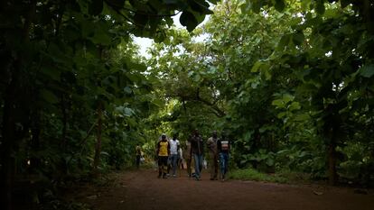 Un grupo de jóvenes llega a Bana para cazar mosquitos.