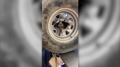 El angustioso rescate de un perro de tres meses atrapado en la llanta de un coche