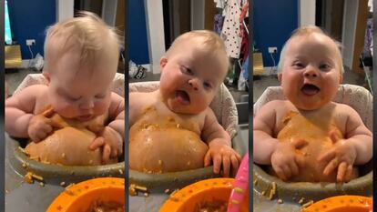 La página de esta red social @PositiveaboutDownSyndrom [positivos sobre el síndrome de Down, por su traducción al español], compartió el vídeo de la mujer, en el que se ve cómo su hijo juega con los espaguetis con tomate, los cuales casi no entran en su boca y descansan sobre su hermosa tripa, completamente embadurnada. Las risas de la mujer son contagiosas. Desde que fue publicado a principios de febrero, la grabación ha acumulado millones de visualizaciones y miles de comentarios que, en su mayoría, adoran al pequeño y no lo juzgan.