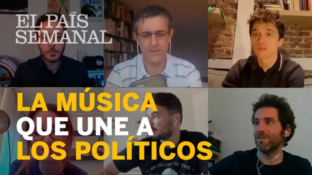 El País Semanal reúne a políticos de distintos partidos en una charla sobre música y cultura en mitad de sus confinamientos. Una conversación capaz de unir a Andrea Levy (Partido Popular), Gabriel Rufián (ERC) e Íñigo Errejón (Más Madrid) y dos expolíticos como el socialista Eduardo Madina y el popular Borja Sémper.