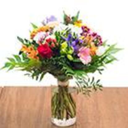 Original QDF. Una propuesta más colorida con este ramo de flores variadas que eligen los profesionales de ¡Qué de flores!. Se escogen según temporada y parece un trocito de jardín que llega directo a tu casa.