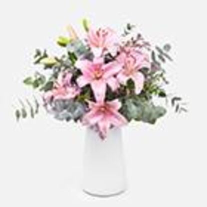 Amusing. Por si no eres amante de las rosas, hay otras muchas opciones que te gustarán, como este ramo de liliums de color rosa, que también incluye parvifolia, flor de cera, lentiscus y eucalipto, y que llegará con las flores a punto de abrirse para que dure lo máximo posible.