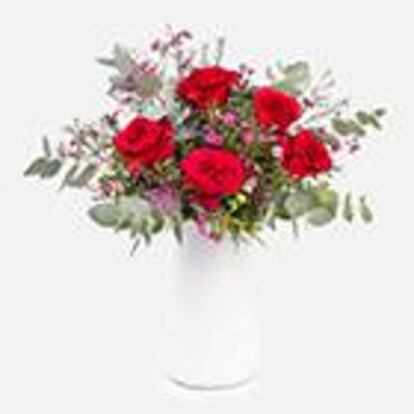 - FloraQueen: Otra de las webs estrella para enviar flores frescas personalizadas y que ofrece, además de plantas y ramos, complementos como botellas de cava y champán o bombones. Todos los pedidos se pueden, además, completar con tarjetas con mensajes o jarrones para los ramos. Puedes enviar un ramo desde 39,90 euros (ahora con descuentos de hasta el 50%) y elegir el mismo 14 de febrero como fecha de entrega.