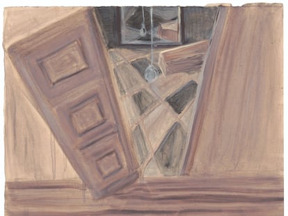 La exposición ‘Anagnórisis’, hasta el 11 de octubre en la galería madrileña The Goma, muestra papeles y lienzos de pequeño formato donde la huella de la amenaza, la sordidez o el dolor nunca abandonan la escena