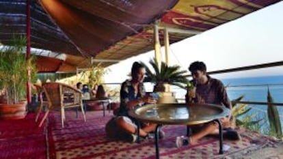 El corte de una concha de nautilus da la bienvenida a estos espacios para distintas horas del día. En la cervecería-asador al aire libre se apuesta por el tartar de atún, la brocheta de mero y la leche frita. Después, a las 16.00, abre la jaima, tapizada con alfombras turcas y marroquíes, y pufs por todo asiento. Al acercarse al ventanal, la música se mezcla con el rumor de las olas. Todo anima a una cena exótica.